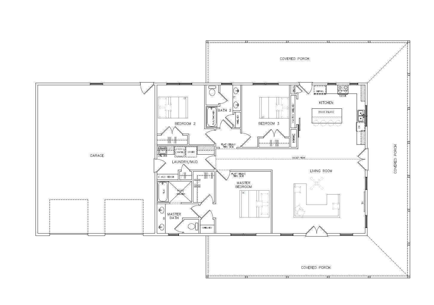 The Campbell is an 1800 sq ft home featuring three spacious bedrooms and two full bathrooms. The open floor plan connects the living and kitchen areas creating a perfect space for entertaining. This home also features a beautiful covered wrap-around porch for added outdoor space.